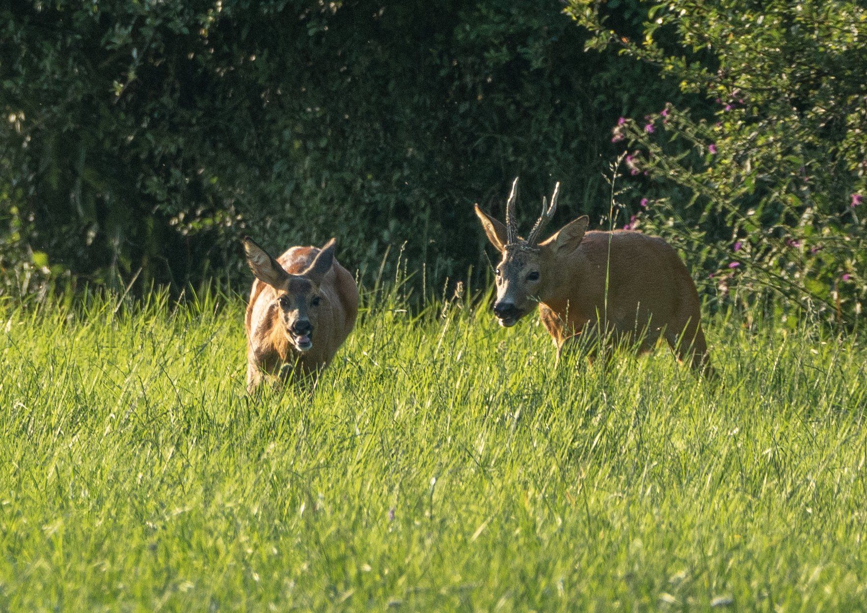 Im obigen Bild treibt ein brunftiger Rehbock eine Ricke.